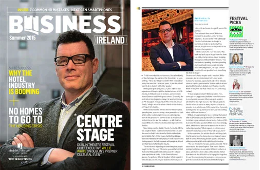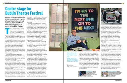 Earlier in his career, White co-founded drama company Loose Canon Theatre in 1996 before establishing Irish Theatre Magazine two years later. He has worked for RTE as a cultural reporter, researcher and assistant producer. In 2008, he was awarded a fellowship on the Clore Leadership Programme. Recently, he joined the steering group for Dublin’s bid to be the 2020 European Capital of Culture and, in February, he was elected to the Dublin Chamber Council. One can’t help wonder if these projects share a common denominator.